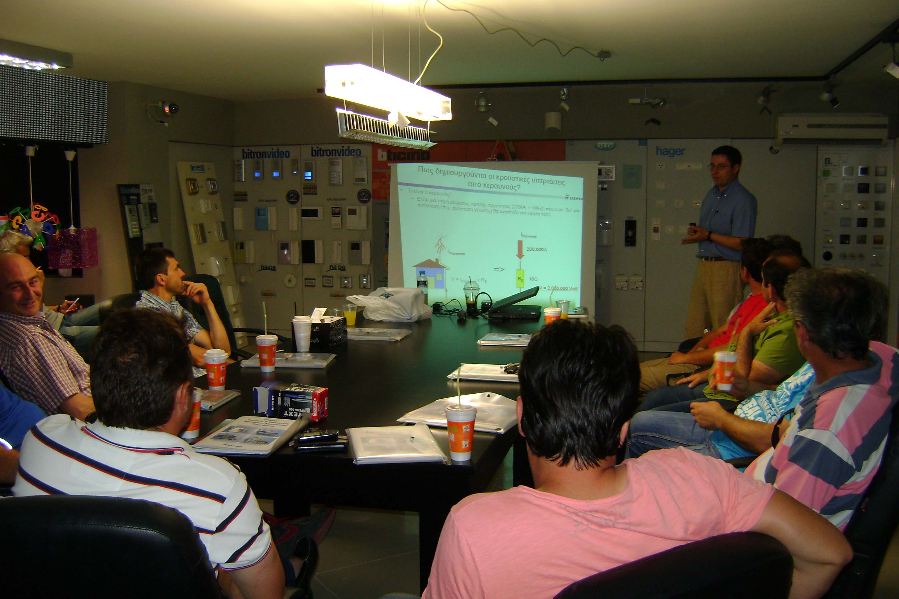 Την Τετάρτη 28 Μαΐου 2014 σε συνεργασία των εταιρειών ΕΛΕΜΚΟ ΑΒΕΕ & ΧΡΥΣΟΠΟΥΛΟΣ ΑΕ πραγματοποιήθηκε παρουσίαση στα μέλη του συνδέσμου μας με θέμα “Προστασία από Κρουστικές Υπερτάσεις ηλεκτρικών και ηλεκτρονικών συστημάτων”